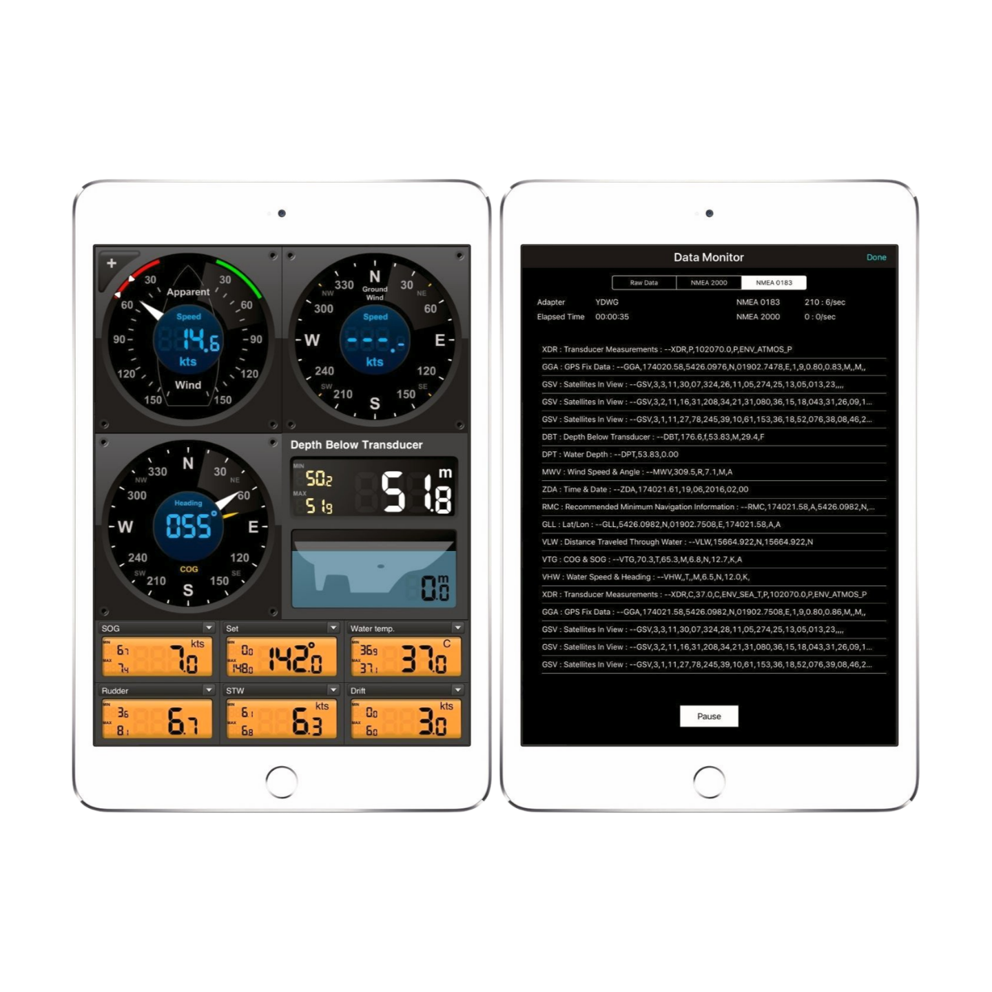 Volle Datensichtbarkeit: Empfangen Sie eine breite Palette von Daten auf Ihrem PC, einschließlich Position (GPS), Kurs, Geschwindigkeit (SOG/STW), Winddaten, AIS-Informationen und mehr (vorausgesetzt, die entsprechenden Sensoren sind im Netzwerk angeschlossen).